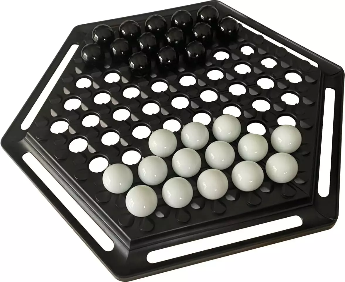 Contenu 28 billes (14 noires et 14 blanches), 1 plateau de jeu hexagonal, 1 règle du jeu