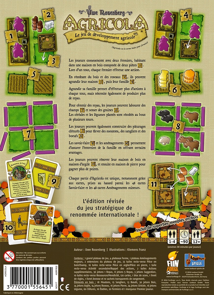 Chaque partie du jeu Agricola est unique, notamment grâce aux cartes, prises au hasard parmi les 48 cartes Savoir-Faire et les 48 cartes Aménagements mineurs.