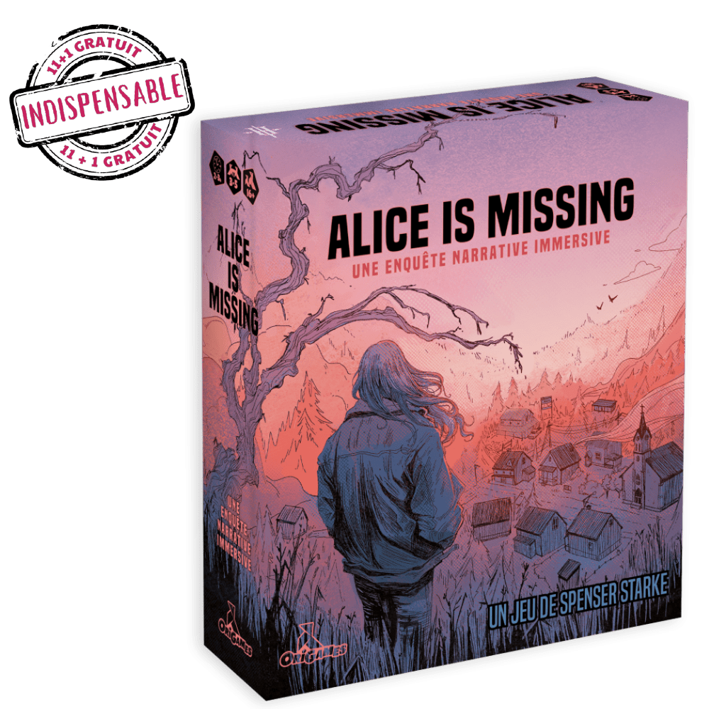 ALICE IS MISSING est une expérience ludique, entre jeu d’enquête et jeu de rôle. Alice Briarwood, une lycéenne de la paisible ville de Silent Falls en Californie du Nord, a disparu. Le jeu se déroule dans le silence. Utilisez votre téléphone portable pour envoyer des textos à votre groupe de joueurs et de joueuses, afin de découvrir des indices, et comprendre ce qui est arrivé à Alice.