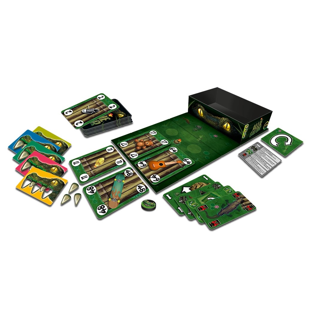 Attention ! Allie Gator a les crocs et vous guette ! Elle peut vous mordre à tout moment… Trouvez un moyen de la distraire : jouets, friandises, vieux jeu de société ou même un vieux pneu… Tout peut fonctionner, tant que vous lui mettez quelque chose sous la dent. Mais si vous n’avez rien à lui proposer… CROC ! C’est vous qui deviendrez son goûter ! Et gare aux points malus que vous subirez : vous risquez de vous en mordre les doigts !