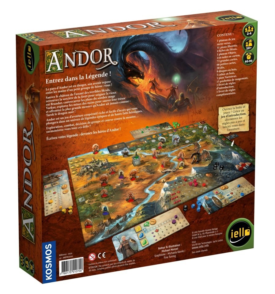 Le pays d’Andor est en danger, son avenir repose entre les mains d’un petit groupe de héros : vous ! Sauvez le château de l’assaut des terribles Skrals, retrouvez la sorcière de la forêt pour soignez le vieux roi Brandur, contrecarrez les plans du sombre mage Varkur, explorez les mines des nains pour sauver leur trésor et affrontez la plus grande menace qu’Andor ait jamais connue : Tarok le dragon noir !