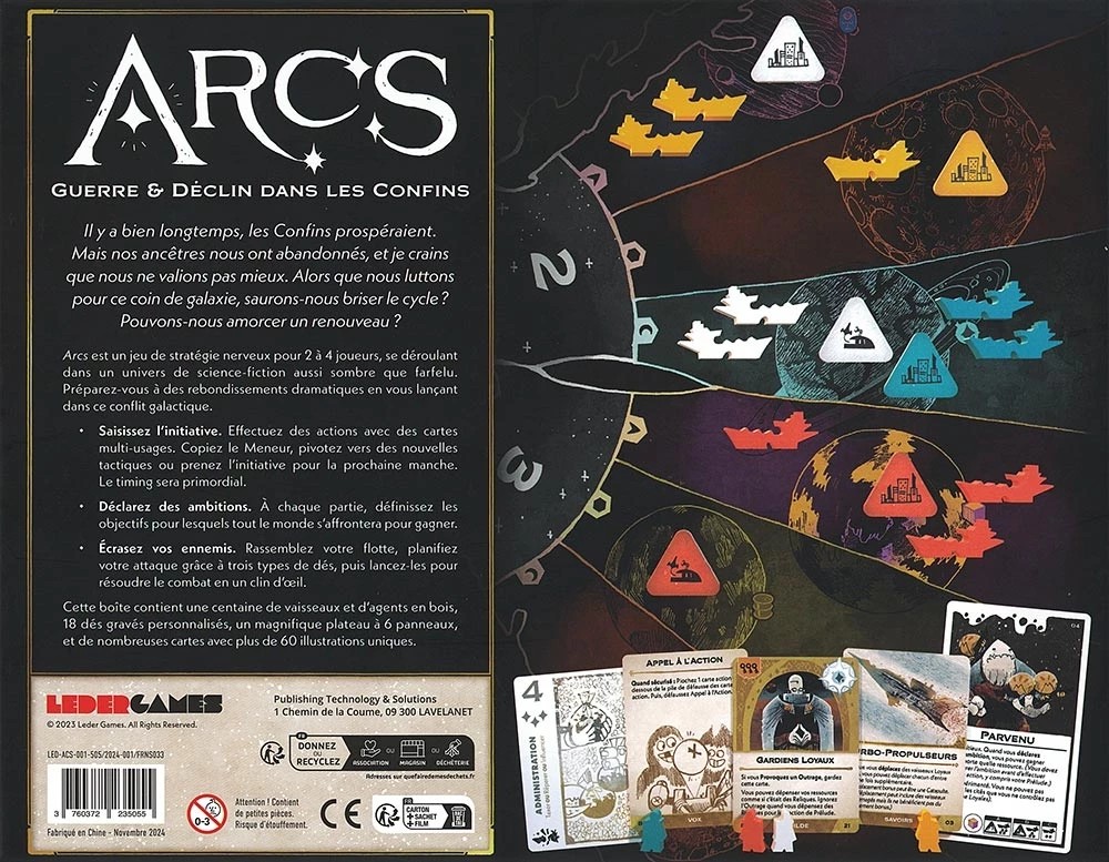 Arcs est un jeu de stratégie de science-fiction, qui se déroule dans un univers sombre et loufoque. Les joueurs incarnent des dirigeants d’un empire lointain, en déclin et négligent, désormais libres de lutter pour la domination, que ce soit par la bataille, la collecte de ressources rares ou l’intrigue diplomatique. Préparez-vous à des rebondissements dramatiques lorsque vous vous lancerez dans cette lutte galactique.