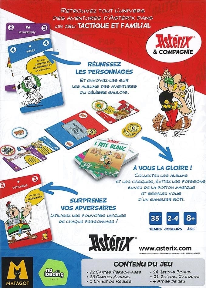 Plongez dans l’univers culte d’Astérix, dans ce jeu de cartes et de stratégie pour 2 à 4 joueurs. Formez des Albums avec vos voisins, recrutez des personnages emblématiques et menez des affrontements malins pour accumuler des lauriers et l’emporter !