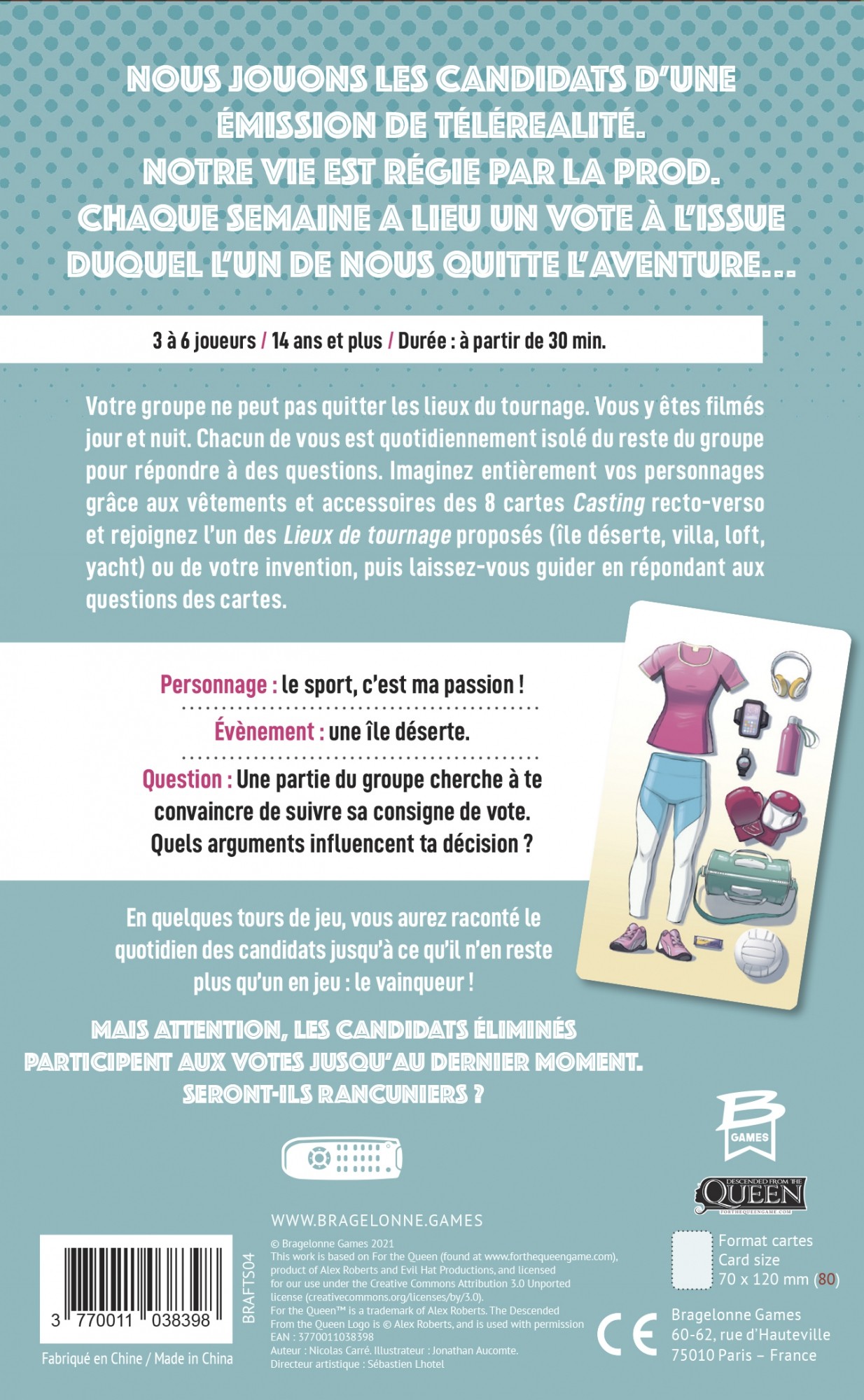 Audimat vous emmène dans l’univers trépidant de la télé-réalité. Il s’agit d’un jeu de cartes et de rôle coopératif axé sur la narration, faisant partie de la série « For The Story ». Laissez-vous emporter par une expérience de jeu de rôle narratif simple et accessible.