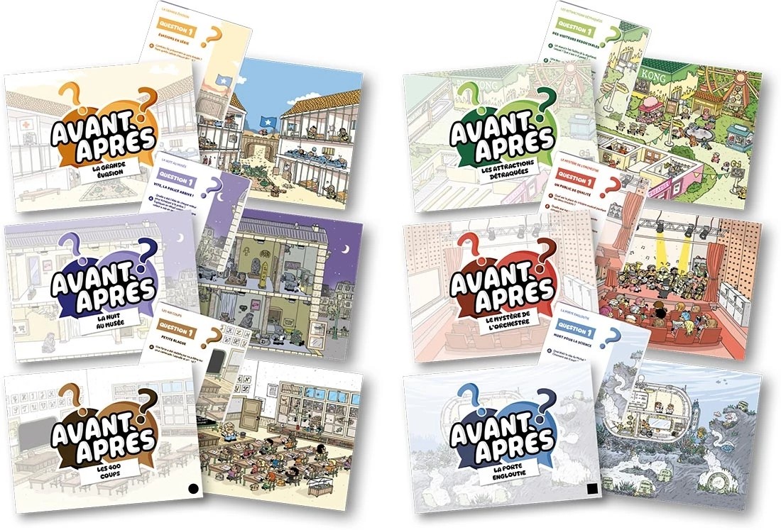 Avant Après est un eu d’enquête coopératif aussi original qu’immersif. Répartis en deux groupes, chaque équipe reçoit secrètement une illustration représentant la scène avant ou après un événement mystérieux. Mais attention… personne ne sait qui a quelle version !