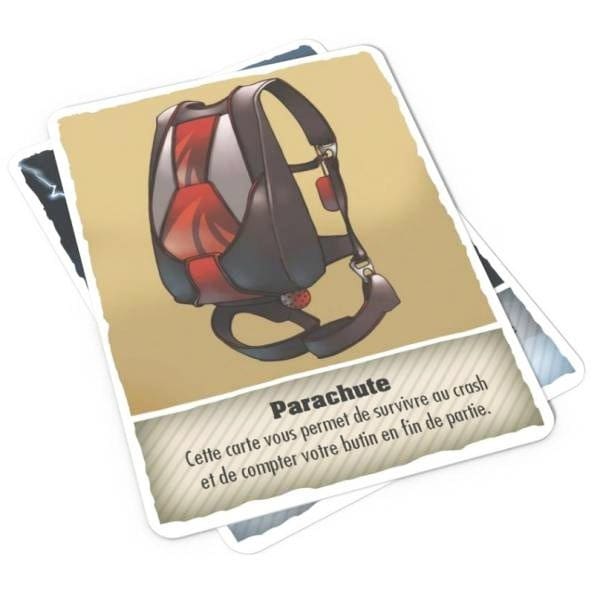 Plongez dans l’action. Que vous voliez, mentiez, menaciez ou usiez de votre ingéniosité, tout est permis pour réclamer la part la plus imposante du butin et arriver à bon port. Chaque joueur se voit attribuer un personnage doté d’un pouvoir spécial unique, ainsi que des cartes de départ, d’action et d’argent. Parmi ces cartes initiales, se cachent de 2 à 5 parachutes (en fonction du nombre de joueurs). Un lancer de dés égal au nombre de joueurs moins un guide vos actions. Lancez les dés, activez votre pouvoir spécial, dérobez des cartes ou récupérez du butin. À chaque tour, un joueur mène la danse, tandis qu’un suspense électrisant règne.