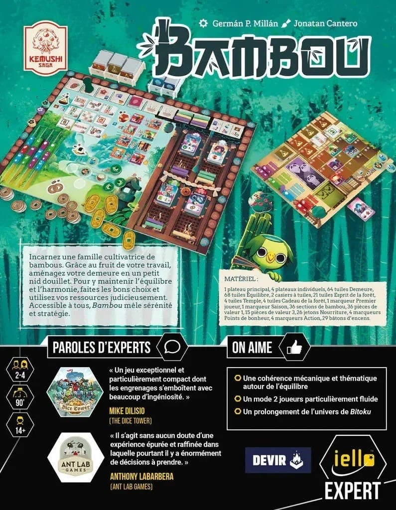 Bienvenue dans le monde paisible et stratégique de Bambou. Ce jeu de société pour 2 à 4 joueurs vous plonge dans la gestion d’une ferme familiale de bambou, où chaque décision compte pour apporter prospérité et bonheur à votre clan. Avec une esthétique soignée et des mécanismes de jeu riches, Bambou promet des heures de divertissement stratégique.