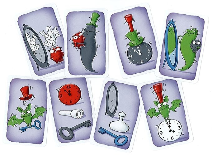 Dans le jeu Bazar Bizarre, des cartes sont révélées les unes après les autres, chacune montrant des objets dans des couleurs différentes. Le but des joueurs est de saisir le bon objet au plus vite en suivant des règles précises. Mais attention, il y a souvent des pièges : il faut soit prendre l’objet qui correspond parfaitement à l’image, soit celui qui n’a ni la couleur ni la forme montrées sur la carte.