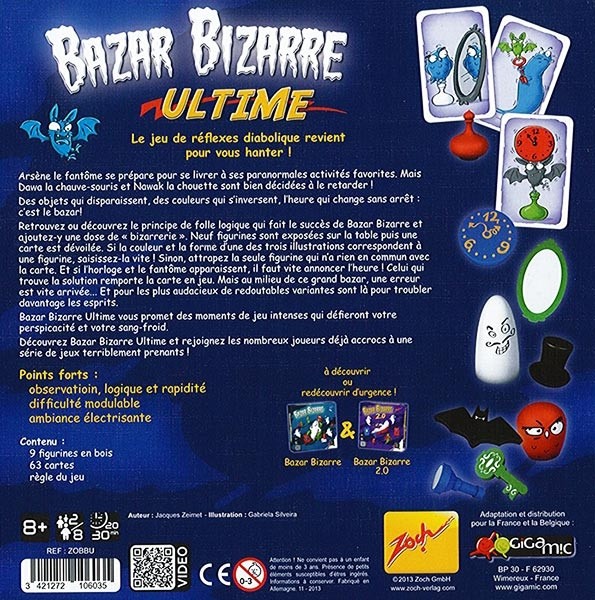 Dans Bazar Bizarre Ultime, de nouveaux objets et des variations de règles viennent compliquer les décisions rapides que doivent prendre les joueurs. Cette version pousse à réfléchir encore plus vite, tout en maintenant un rythme de jeu dynamique et amusant. C’est un jeu qui plaira aux fans des précédentes versions tout comme aux nouveaux joueurs qui aiment les défis de rapidité et de logique.