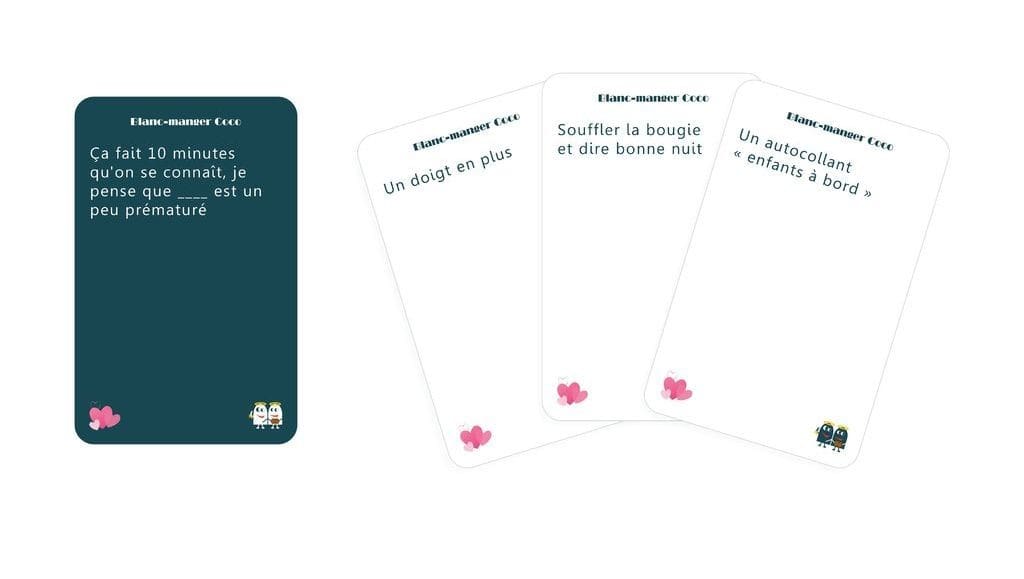 Parce qu’on ne rit jamais assez, parce qu’on a le droit de rire de TOUT, voici Blanc Manger Coco, le jeu parfait pour animer vos apéros. Dans la même lignée que le tome 1, le jeu original, et le tome 2, le Déluge, la Petite Gâterie est un jeu richement doté en cartes questions et réponses vous assurant de nombreuses heures de réjouissance autour d’une table basse. Les règles du jeu restent les mêmes que pour les 2 précédents tomes, ainsi que les 6 extensions de 200 cartes : les cartes blanches sont neutres de sens : elles ne sont pas drôle en soit. C’est à vous de créer le rire, le décalage en les associant avec les cartes bleues : absurde, évidence, inattendu ou encore corrosif… à vous de vous adapter à votre auditoire.