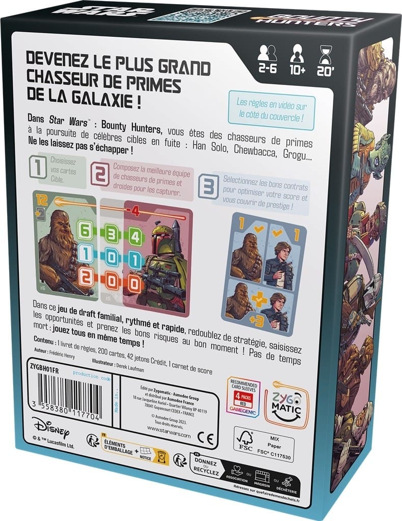 Star Wars : Bounty Hunters est un jeu de cartes et de stratégie palpitant pour 2 à 6 joueurs. Plongez dans l’univers de Star Wars et devenez le chasseur de primes le plus redouté en capturant des cibles, en remplissant des contrats et en achetant des équipements au marché de Jawa.