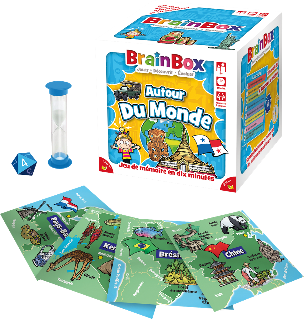 Avec BrainBox – Autour du Monde, vous vous apprêtez à vivre un moment de divertissement tout en stimulant votre mémoire. Cette collection BrainBox est une série de jeux de mémoire conçus pour favoriser l’apprentissage et l’entraînement cérébral.