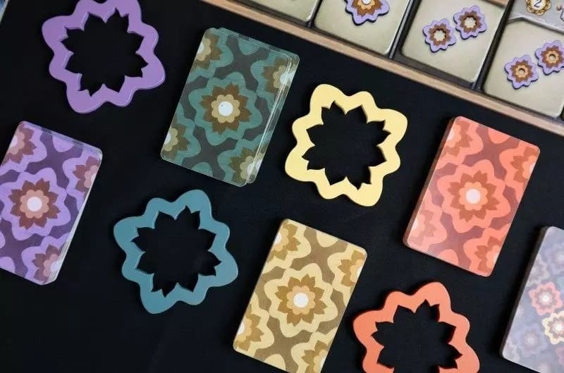 Bienvenue au Café de Fleur, où la rénovation du sol est devenue un véritable défi artistique et logistique. Durant 3 manches, votre mission sera de choisir et de poser des pièces d’ornement en forme de rosace, tout en gérant soigneusement une main de cartes couleurs et jokers pour couvrir les frais de construction. Saurez-vous trouver l’équilibre entre dépense, récupération de cartes et planification de vos coups ?