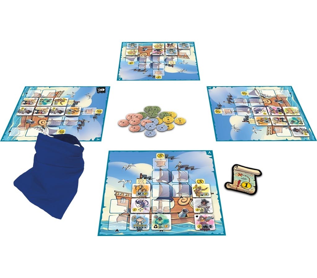 Captain Flip est un jeu de mémoire et de placement de tuiles captivant pour 2 à 5 joueurs. Incarnez un capitaine pirate et recrutez un équipage de canonnier, perroquet, navigateur, vigie et cuistot pour remplir vos coffres de pièces d’or brillantes.