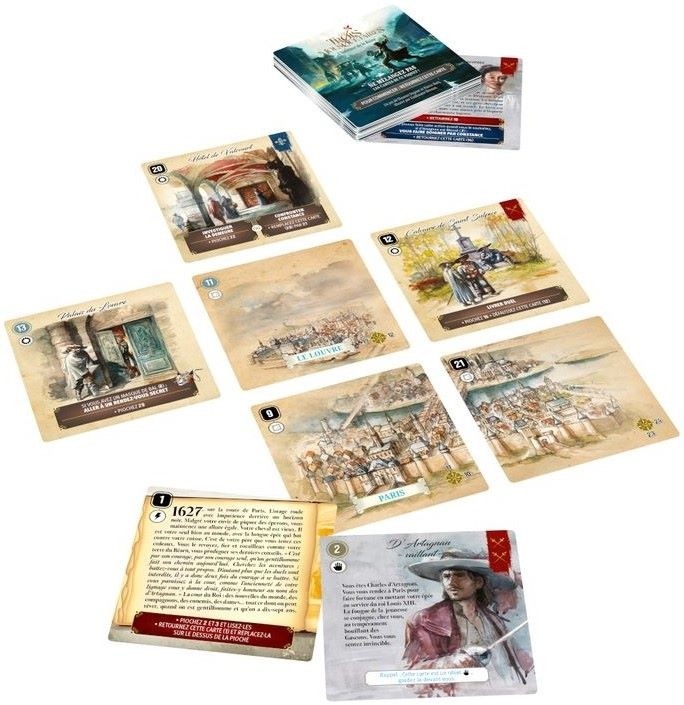 « 3 Mousquetaires – L’Honneur de la Reine » est un jeu Cartaventura captivant qui offre une expérience narrative unique basée sur l’univers du film Les Trois Mousquetaires. Les joueurs endossent le rôle de d’Artagnan et sont entraînés dans une aventure palpitante dès son arrivée à Paris. Constance Bonacieux les informe d’un complot du cardinal visant à déshonorer la reine, et c’est aux joueurs de guider les choix moraux et les actions de d’Artagnan.