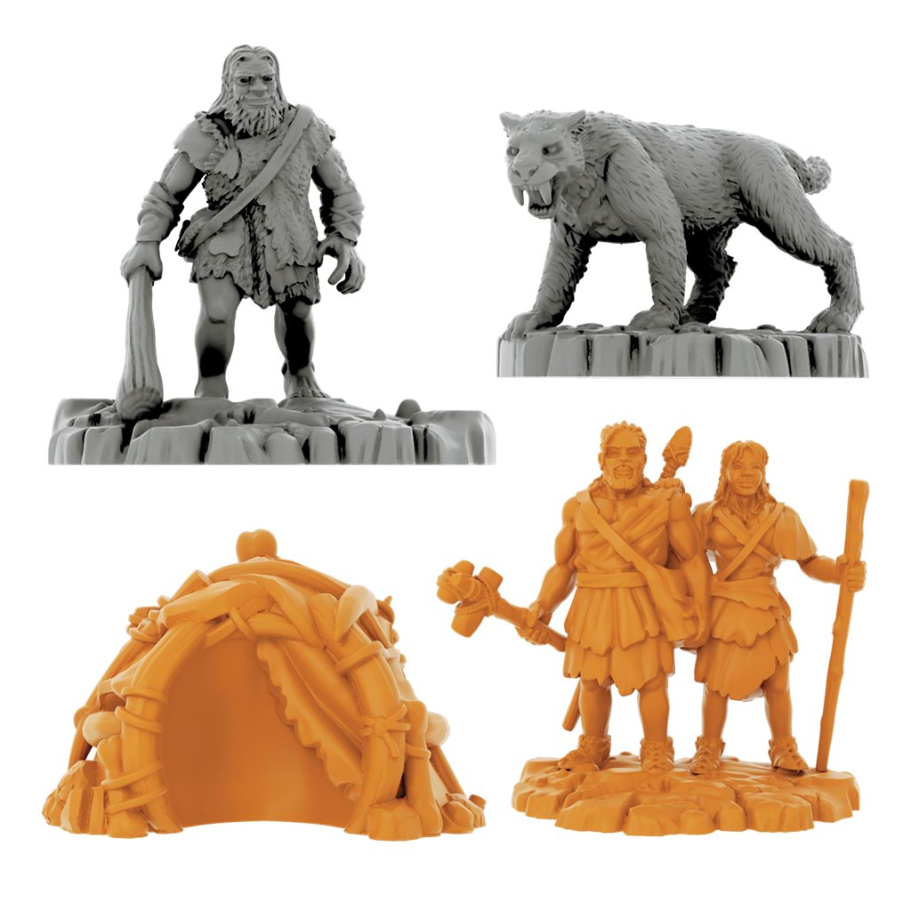 Contenu 1 plateau de jeu, 4 pistes Amélioration, 13 jetons numérotés, 8 fiches Référence, 80 cartes Ressource, 1 sabot à cartes, 48 figures homo sapiens, 1 figurine Néandertal, 1 figurine Smilodon, 18 marqueurs exploration, 33 marqueurs Campement, 14 marqueurs de points de victoire, 2 dés, 1 livret de règles.