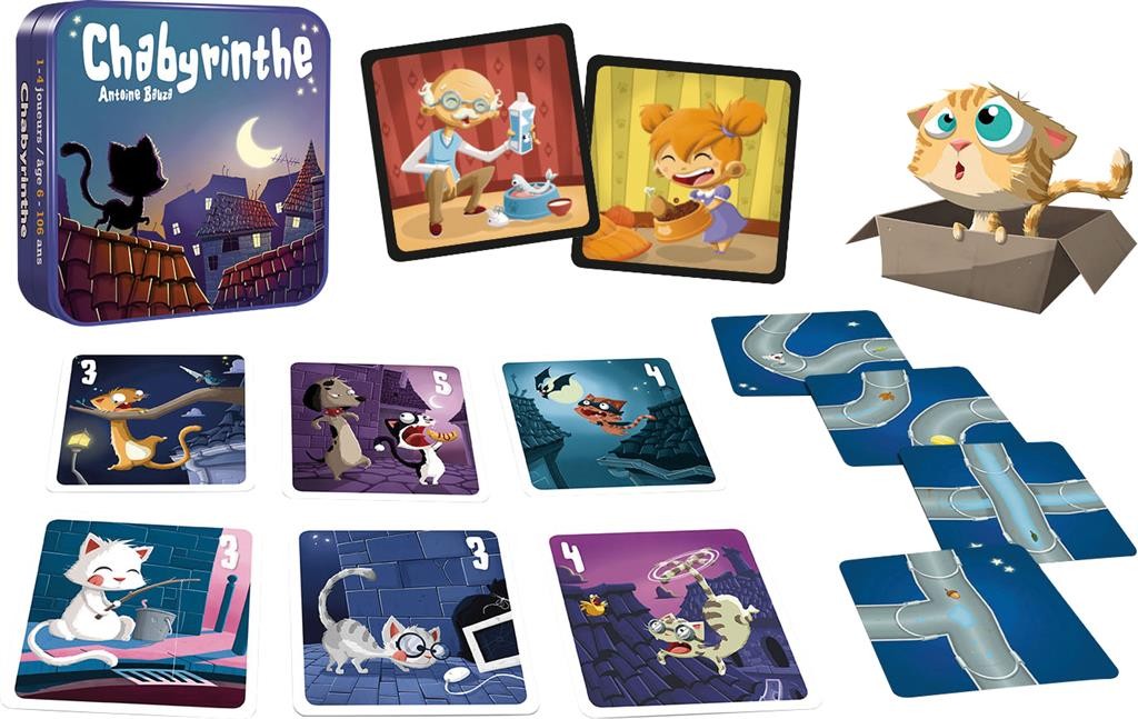 Points forts La nouvelle édition de Chabyrinthe : de nouvelles illustrations très chat-oyantes ! Un jeu malin pour gros matous et petits filous signé Antoine Bauza (Hanabi). 5 modes de jeu : classique pour tous, chatons pour les plus petits, solitaire, coopératif et par équipes. De quoi chat-muser pendant des heures !