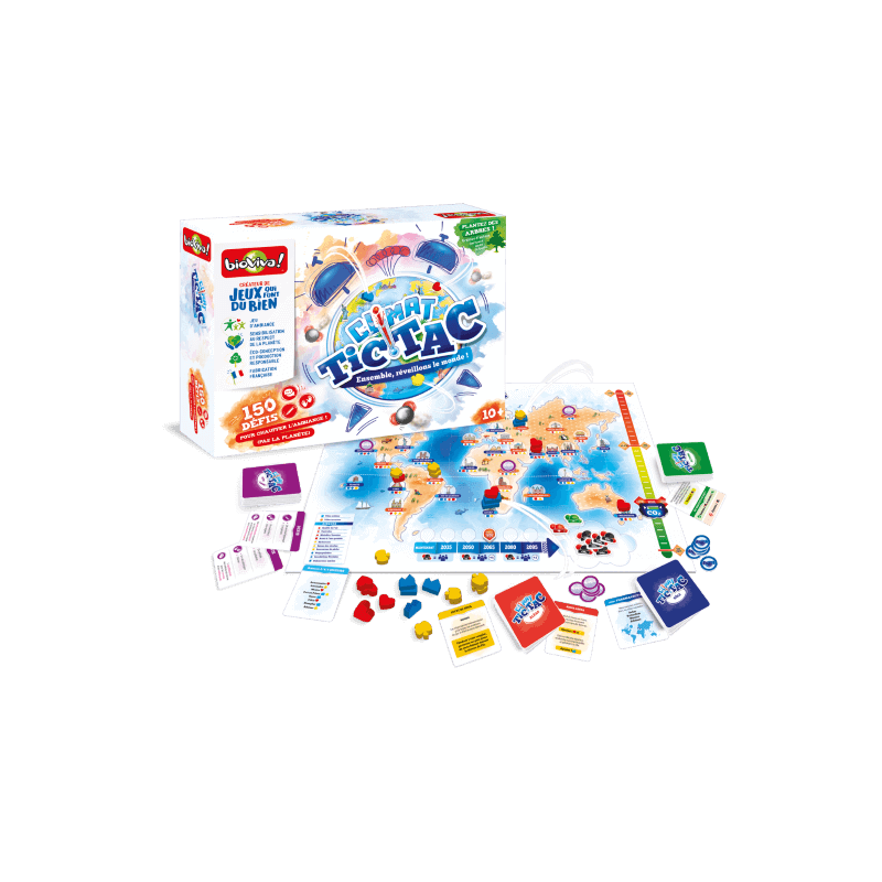 Dans Climat Tic-Tac, les joueurs s’allient afin de lutter contre le changement climatique. Ils tentent, tous ensemble, de faire les bons choix pour protéger les hommes et la planète et diminuer les émissions de CO2.