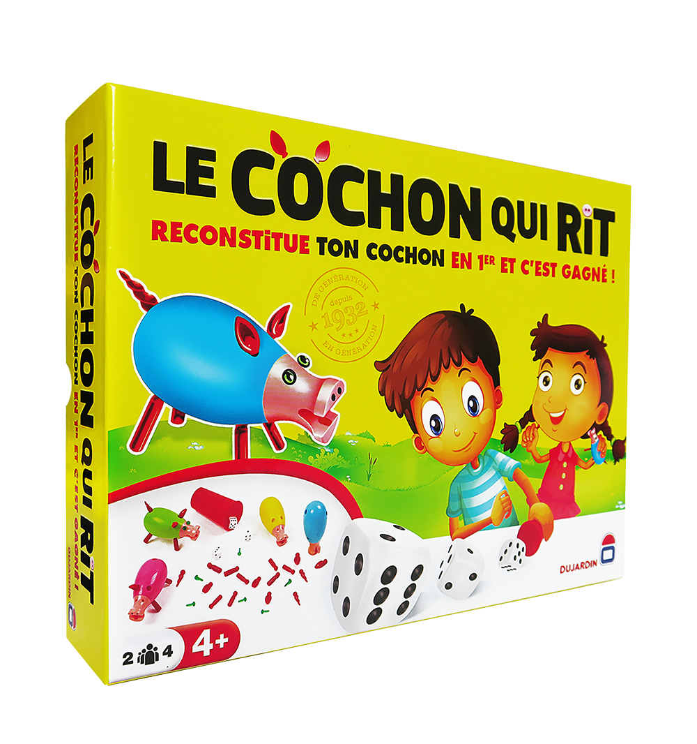 Découvre ou redécouvre le célèbre jeu du Cochon Qui Rit dans son édition par quatre.