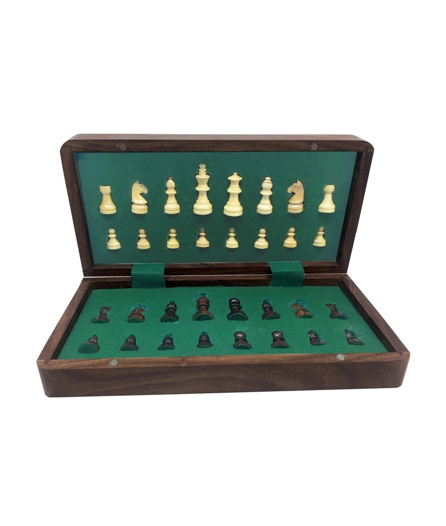 Le plateau de jeu mesure 17 cm de côté et est fabriqué en noyer et en érable, offrant non seulement une surface de jeu élégante mais également une grande durabilité. Les pièces d’échecs magnétiques adhèrent solidement au plateau, évitant ainsi les perturbations accidentelles du jeu, même en déplacement.