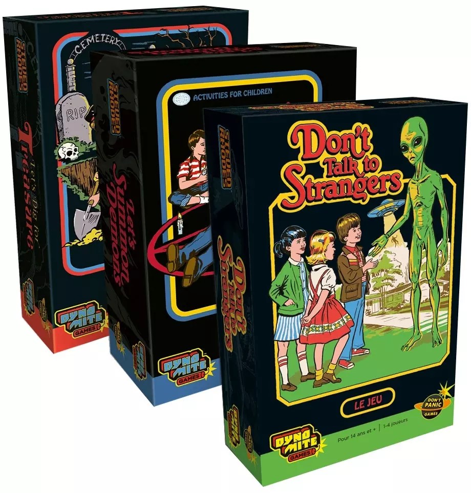 Un Coffret Rétro et Collector pour les Amateurs d’Humour Noir Le coffret Steven Rhodes est un must-have pour les fans de jeux d’ambiance qui apprécient une touche de nostalgie et d’humour irrévérencieux. Illustrés avec le style unique de Steven Rhodes, ces jeux se démarquent par leurs thèmes audacieux et leurs mécaniques simples mais addictives. Idéal pour des soirées décontractées, ce coffret collector saura surprendre et ravir tous les amateurs de jeux au second degré !