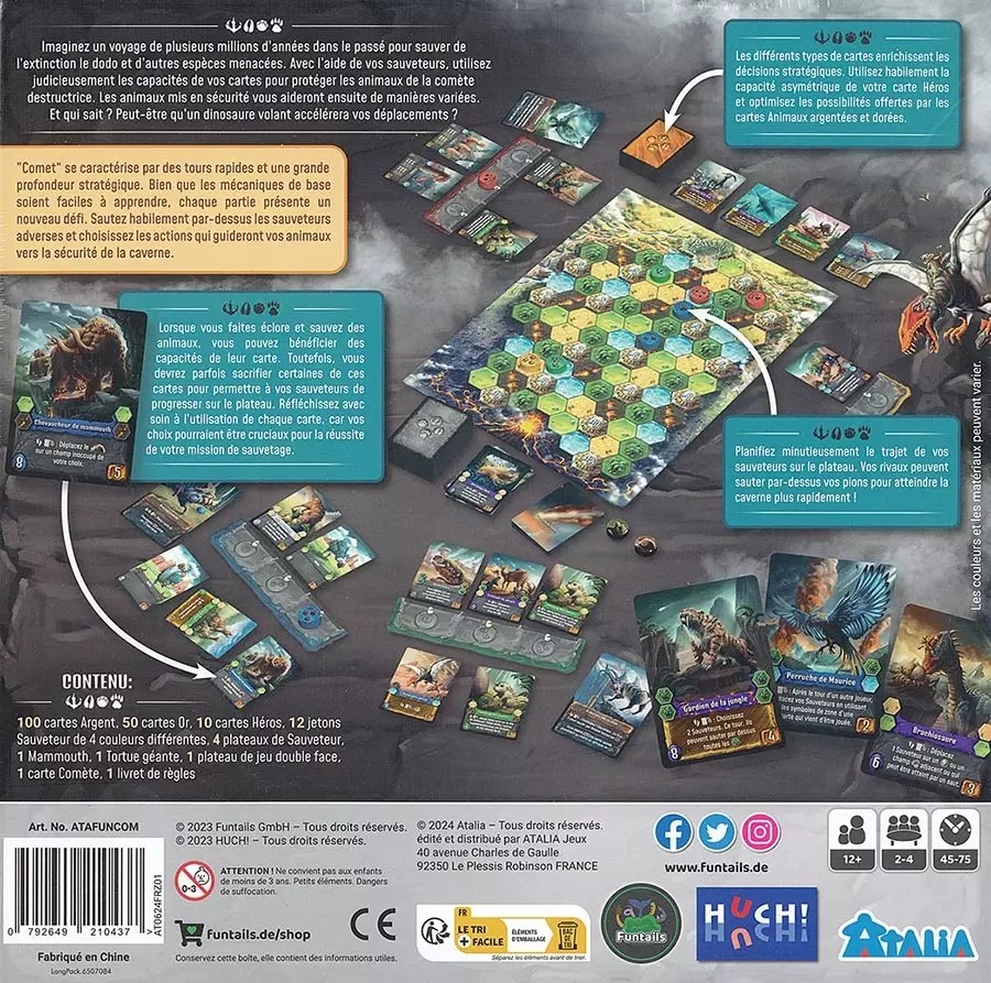 Un jeu compétitif sans combat Comet est un jeu de construction de moteur et de gestion de ressources, fluide, interactif et sans affrontement direct. À chaque tour, développez vos capacités de sauvetage, adaptez votre tactique à celles des autres joueurs, et maximisez vos synergies.