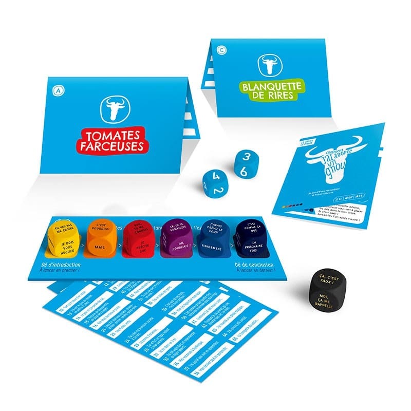 Le narrateur lance le premier des 6 dés colorés ! Il lui donne un début de phrase tel que « Je dois vous avouer… ». À lui de compléter cette phrase selon le thème et ton inspiration !