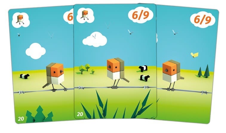 Chaque joueur commence la manche avec 8 cartes Oiseau en main, tandis que d’autres oiseaux sont déjà disposés sur les 4 clôtures centrales. À votre tour, vous posez une série d’oiseaux identiques à l’extrémité d’une clôture. Ces oiseaux se regroupent alors instantanément avec tous les oiseaux identiques déjà présents sur cette même clôture, ce qui vous permet de récupérer dans votre main tous les oiseaux situés entre eux.