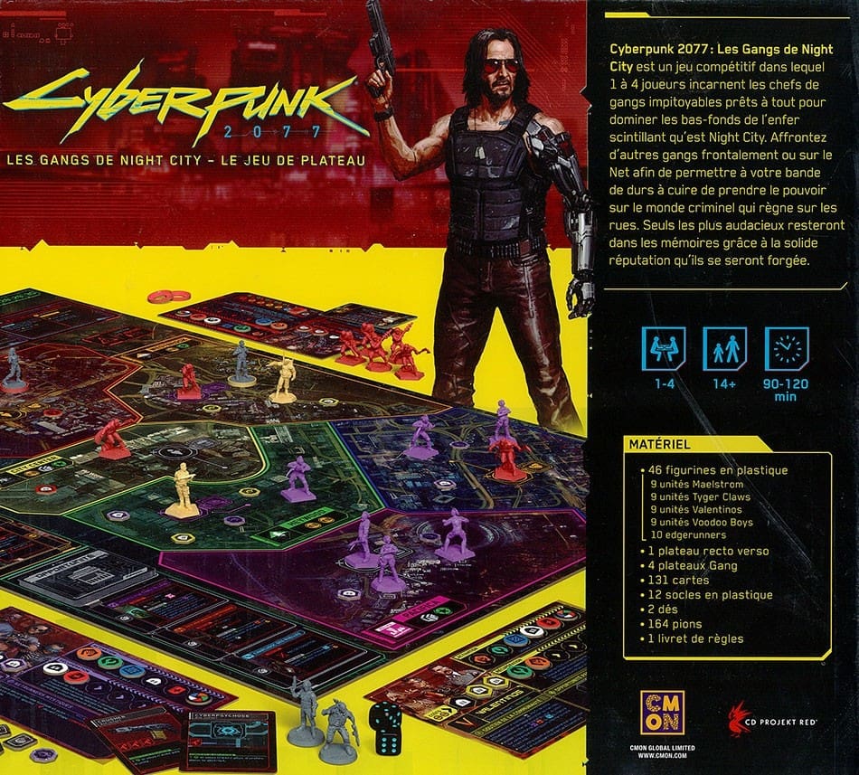 Plongez dans l’univers dystopique de Night City, où les gangs règnent en maîtres sur les bas-fonds et où le Street Cred est la seule véritable monnaie. Inspiré de l’univers du célèbre jeu vidéo Cyberpunk 2077, ce jeu de plateau pour 1 à 4 joueurs vous propulse à la tête d’un gang sans foi ni loi en quête de domination.