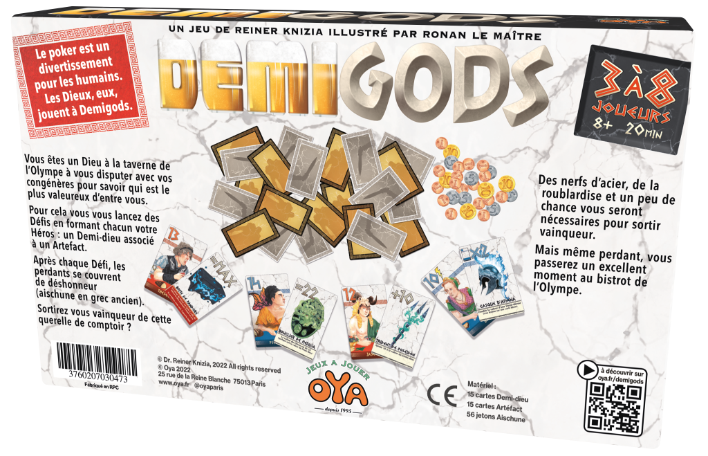 Le Poker Divin À chaque tour, les joueurs sont confrontés à des choix délicats. Faut-il augmenter l’enjeu du défi, rester dans la partie ou se retirer pour éviter l’Aischune? Les interactions entre les artefacts et les demi-dieux ajoutent une dimension stratégique unique.