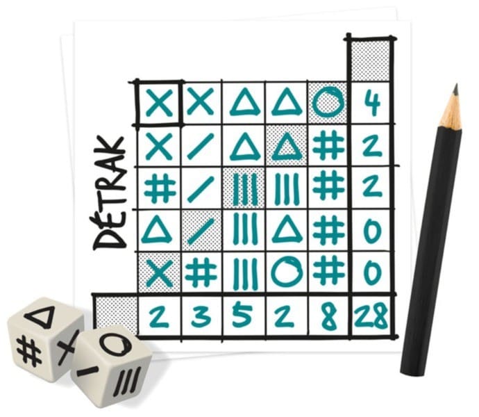 Lancez les dés et notez les symboles obtenus dans votre grille pour marquer le plus possible de points. Pour gagner, il faudra garder un œil sur toutes les lignes et toutes les colonnes, et tenter de créer des suites de 2, 3, 4 ou même 5 symboles identiques.