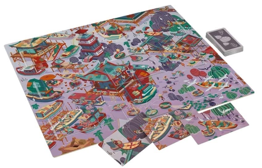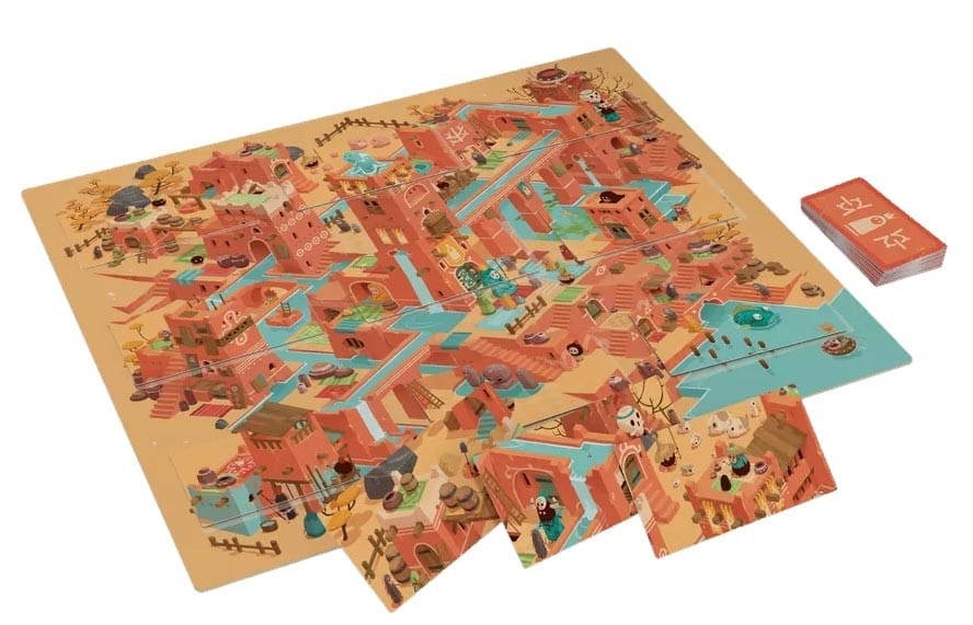Le jeu est simple à mettre en place. Posez le plateau au centre de la table, choisissez votre face préférée, et préparez le paquet de cartes correspondant. Chaque emplacement numéroté accueille une carte, et les cartes restantes forment une pioche. Ensuite, chaque joueur pioche 3 cartes.