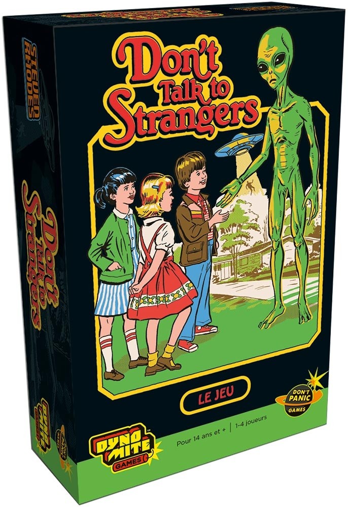 Un jeu familial amusant : Parfait pour passer du temps en famille tout en stimulant la réflexion et la stratégie. Un design original : Plongez dans un univers artistique unique et décalé. Des parties rapides et dynamiques : Idéal pour les soirées jeux, ce qui permet de jouer plusieurs parties en une soirée. Préparez-vous à vivre une aventure hilarante et décalée avec Don’t Talk to Strangers, où chaque décision peut faire la différence entre ramener vos enfants à la maison ou les voir disparaître dans les griffes des envahisseurs !