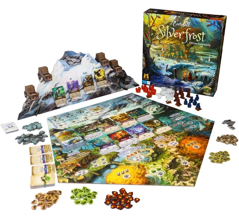 Everdell Silverfrost – Édition Essentielle propose une expérience plus profonde que le jeu original. Sur quatre saisons, vous envoyez vos ouvriers récolter des ressources, accomplir des quêtes et développer votre ville à l’aide de cartes Bâtiments et Créatures.