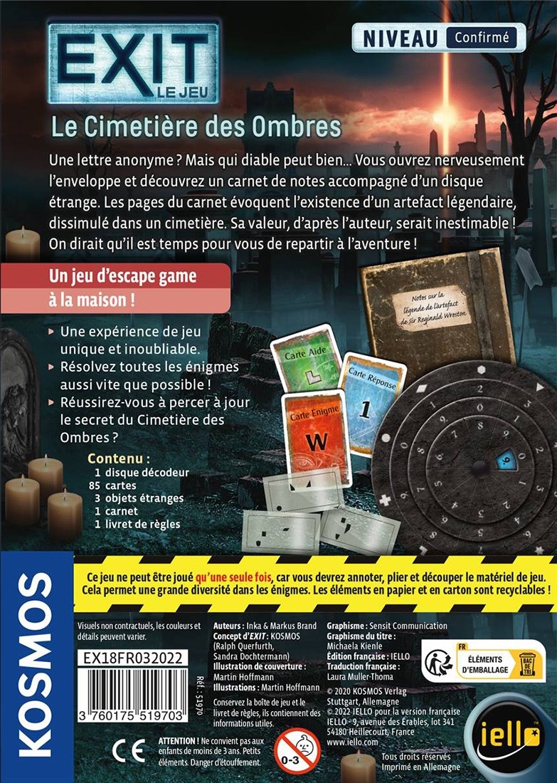 Exit offre plus qu’un simple jeu : c’est une expérience unique et immersive qui vous transporte dans un monde de mystère et d’aventure. Faites appel à vos compétences de coopération, d’observation et de logique pour résoudre le mystère de l’artefact caché.