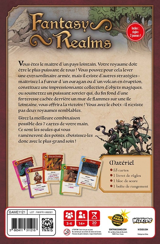 Le joueur qui totalise le plus de points devient le maître du royaume et remporte la partie. Avec ses mécanismes de jeu intrigants et ses nombreuses stratégies possibles, Fantasy Realms promet des heures de divertissement stratégique pour les amateurs de jeux de cartes.