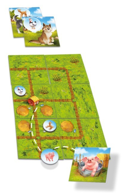 Dans le jeu Farmini, chacun a face à lui une ferme qu’il va devoir agrandir. Tour à tour, pioche une carte parmi les 4 qui se trouvent au centre de la table. Si c’est une carte Enclos : à la façon des dominos, dépose cette nouvelle carte dans ta ferme en faisant correspondre les barrières. Si tu choisis de prendre une carte Animal : dépose un animal dans les espaces prévus pour leur sécurité. Tente de protéger le maximum d’animaux et le maximum de champs de maïs afin de marquer le plus de points possible. Gare au loup, car s’il apparaît, il mangera les animaux qui ne sont pas encore protégés par les enclos.