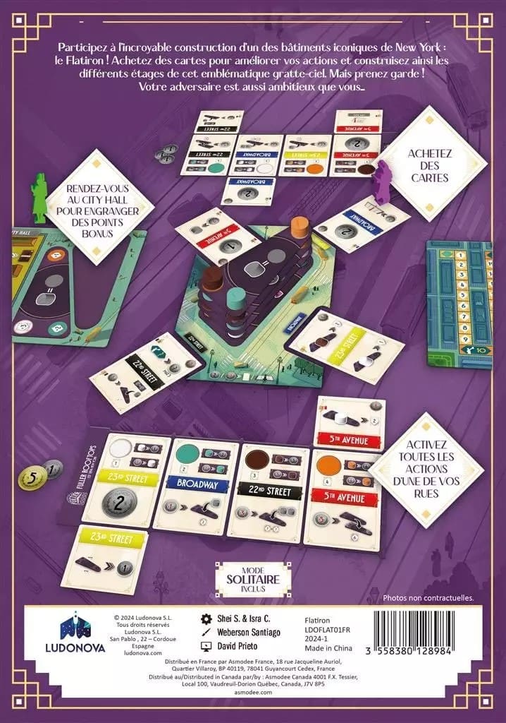 Plongez dans le New York du début du XXᵉ siècle et participez à l’édification d’un monument emblématique : le Flatiron Building. Dans ce jeu de stratégie pour 1 à 2 joueurs, incarnez un entrepreneur visionnaire et rivalisez d’astuce pour laisser votre empreinte dans l’histoire.