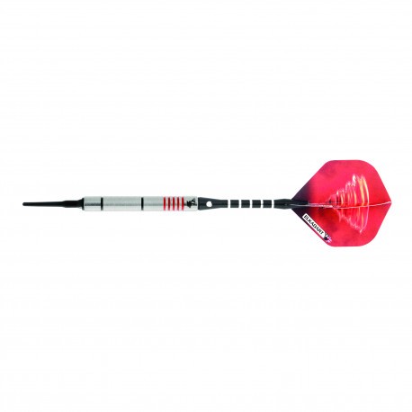3 fléchettes tungstène 90% striées noir et rouge à pointes nylon embouts aluminium avec boitier de rangement fabriqué en Angleterre