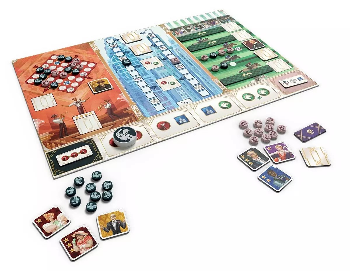 Dans Gatsby, chaque joueur tentera d’exercer son influence dans trois lieux emblématiques :