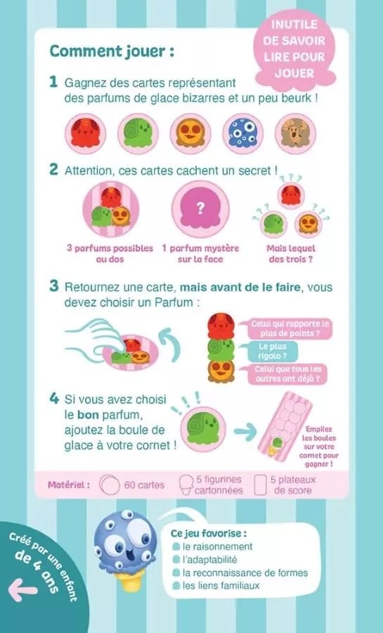 Beurk ! Glaces Dégueu – Gelato loco, le jeu de glaces pas comme les autres ! Le marchand de glaces est là… mais attention : aujourd’hui, les parfums sont étranges, surprenants, carrément beurk ! À vous de remplir votre cornet géant avec 9 boules de parfums différents… si vous avez l’estomac bien accroché !