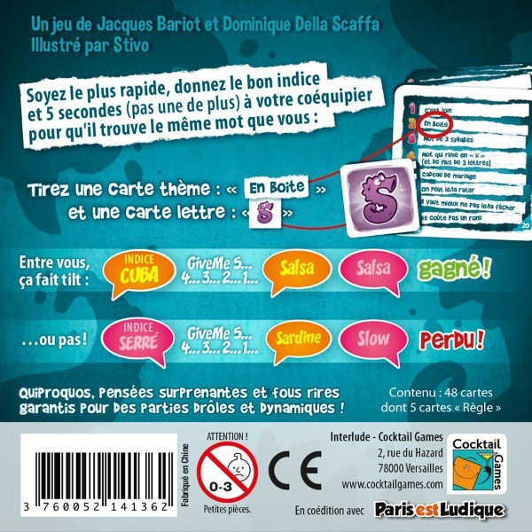 Points-clés Quiproquos et fous rires en cascade Plus de 25000 exemplaires vendus Une petite boîte à petit prix qui s’emmène partout Fabriqué en France !