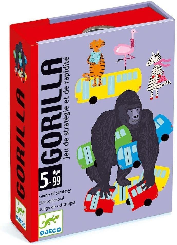Gorilla est un jeu de cartes similaire au Uno. Les joueurs tentent de se débarrasser de leurs cartes en faisant correspondre l’animal ou la couleur. Attention aux cartes spéciales qui peuvent modifier l’issue d’une partie.