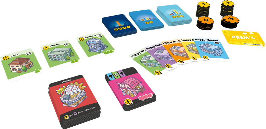 Bâtissez votre petite ville, carte après carte, en gérant vos revenus, pour faire venir des habitants et les rendre heureux. Choisissez chaque bâtiment avec soin et gardez un œil sur vos adversaires ! Trouvez la bonne tactique pour créer un endroit où il fait bon vivre.