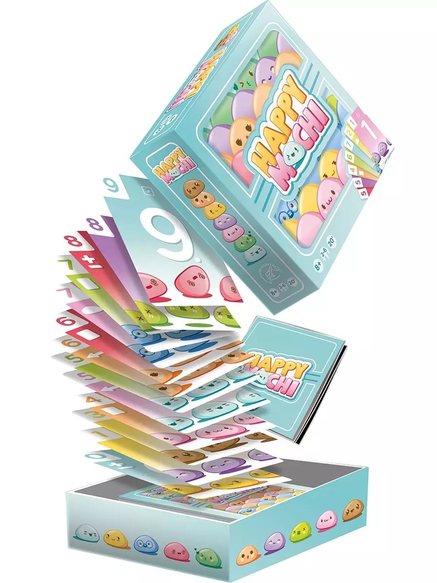 Happy Mochi – Le jeu des duos à croquer ! Préparez-vous à une bataille sucrée pleine de rires et de rebondissements ! Dans Happy Mochi, débarrassez-vous de vos cartes deux par deux… mais sans pouvoir les trier ! Il va falloir jongler entre les contraintes de couleur ou de chiffre, tout en gardant un œil sur vos adversaires.
