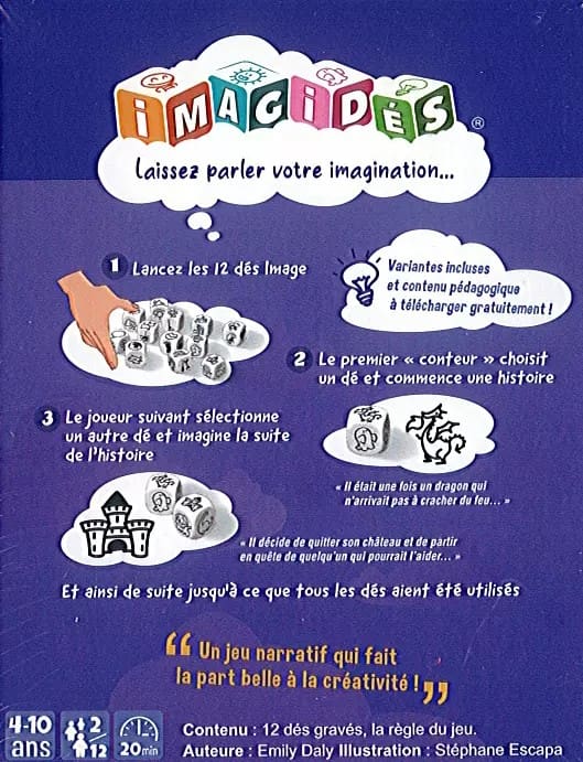 Imagidés est un jeu d’expression et d’imagination qui stimule la créativité et développe l’aisance à l’oral, en solo, en famille ou en classe.
