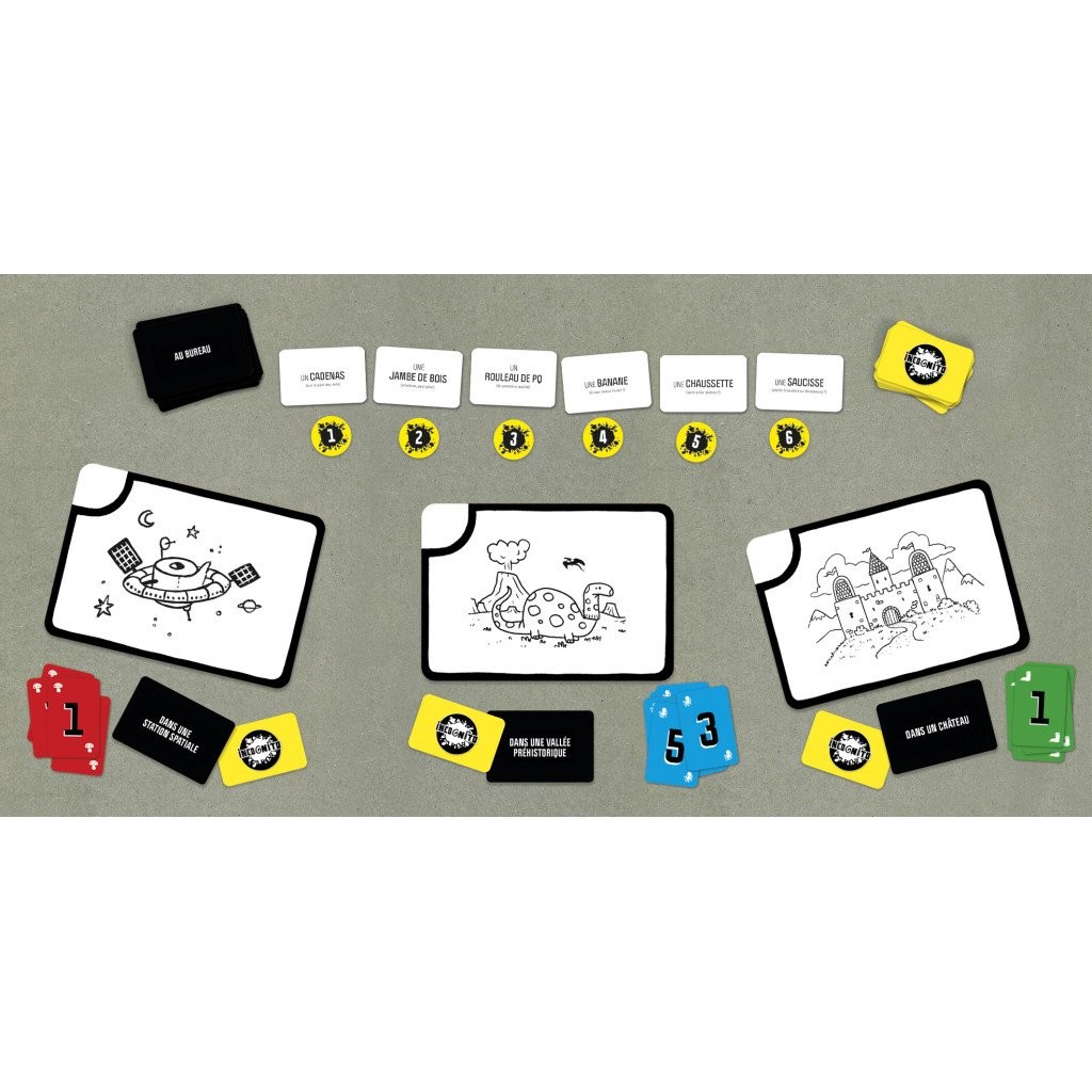 Une banane chez mémé, un chapeau dans l’espace… à vos crayons, prêts ? Gribouillez ! À chaque tour, les joueurs doivent cacher un objet dans un lieu. Il faut réussir à le cacher (mais pas trop) pour que certains joueurs arrivent quand même à le trouver (mais pas tous). Une fois que les joueurs ont caché leur mot, ils vont essayer de retrouver les mots cachés de leurs adversaires.