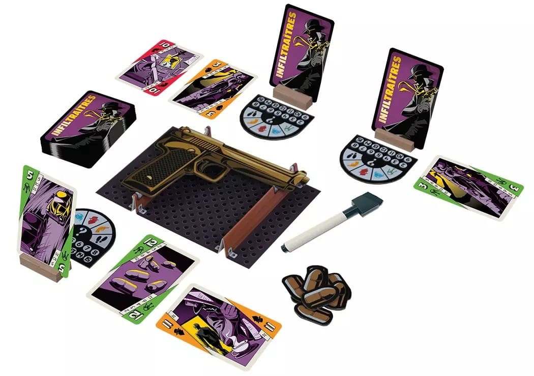 Chaque joueur détient une partie des informations : l’identité d’un traître. Pour progresser, vous devez jouer des cartes devant vous ou vos alliés afin d’échanger des indices, déduire collectivement la véritable identité des infiltrés, et les éliminer avant qu’ils ne détruisent votre organisation. Attention : vos ressources sont limitées, et une mauvaise gestion peut conduire à l’échec !