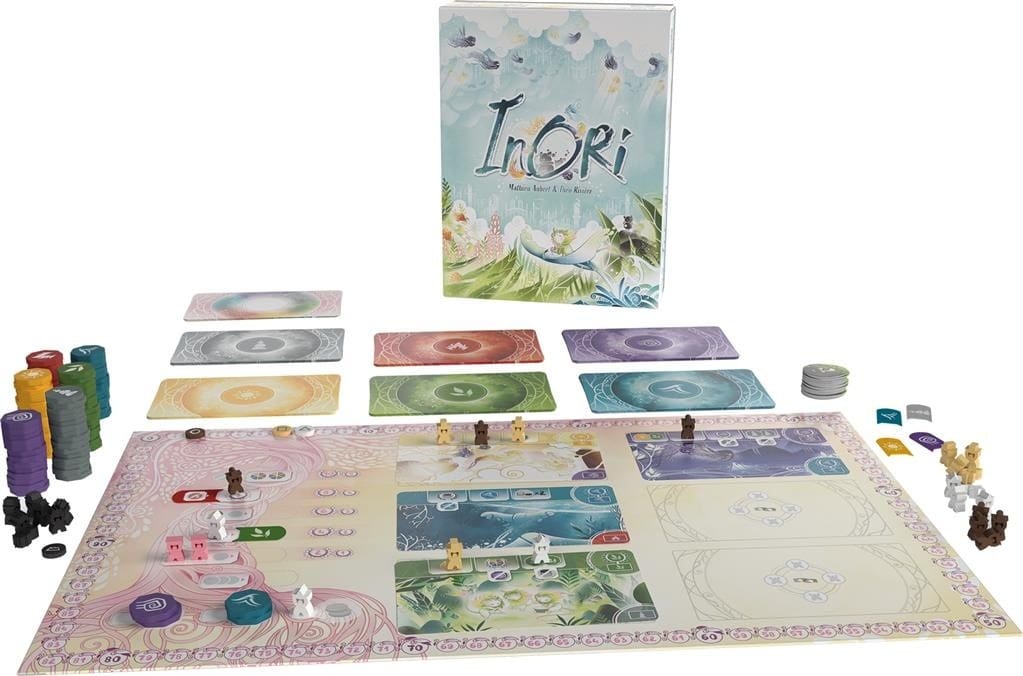 Le jeu Inori combine une esthétique paisible et spirituelle avec une mécanique de placement stratégique et de majorité, où les choix de placement et de gestion des ressources sont cruciaux pour remporter la victoire.