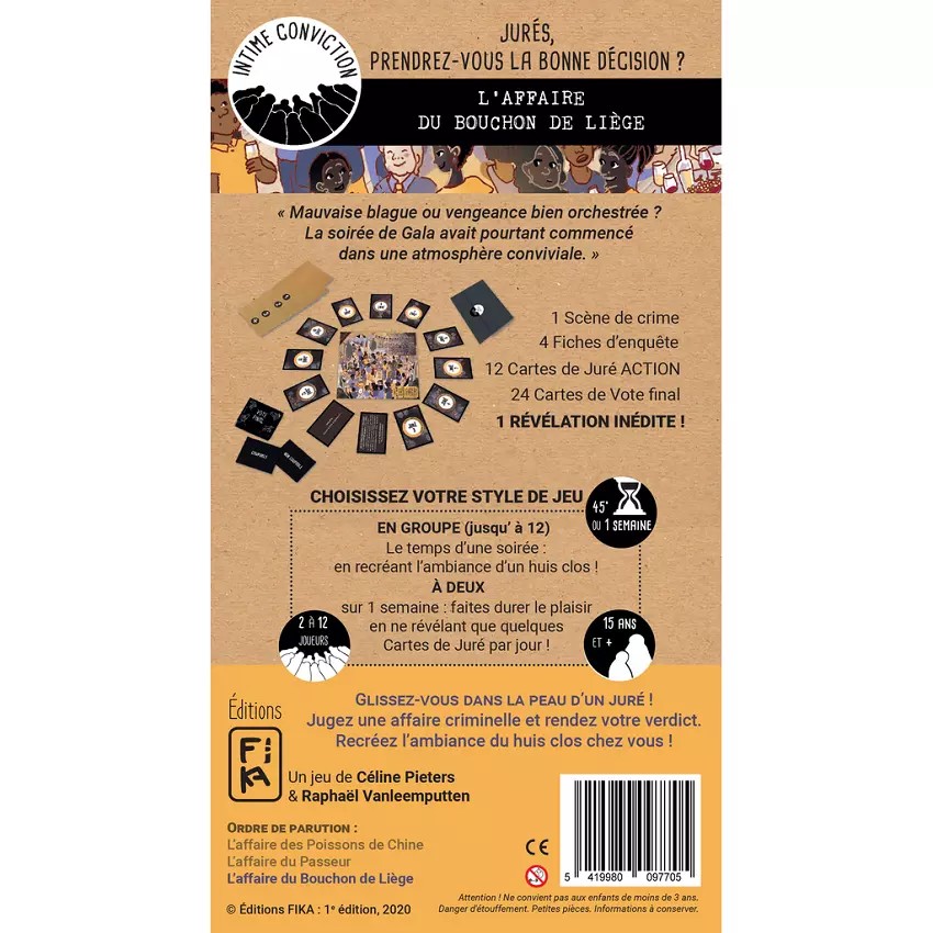 Dans l’Affaire du bouchon de liège, effectuez les actions demandées selon l’ordre et les indications des 12 Cartes Jurés distribuées parmi les joueurs.